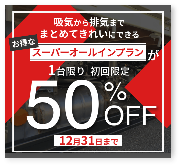 | 燃料タンク400ℓ、 エンジンオイル40ℓの場合 | 吸気から排気まで まとめてきれいにできる お得なプラン | |